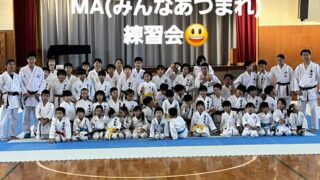 11/24(月・祝)恒例のMA(みんなあつまれ)練習会を開催しました。たくさんの道場の生徒と交流しながら、午前形・午後組手を黎明会の秋山聡先生から指導していただきました。午後の組手はジュニアナショの金…
