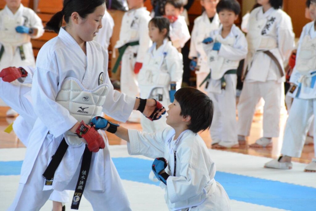 様々な流派の他道場の生徒達とハイタッチで交流しながら、元気に稽古することができました。
