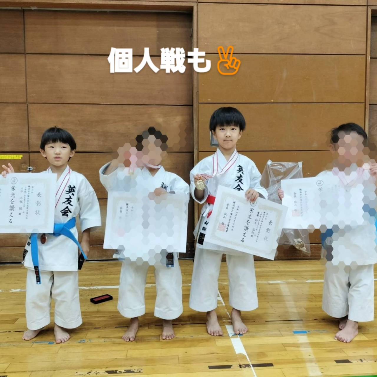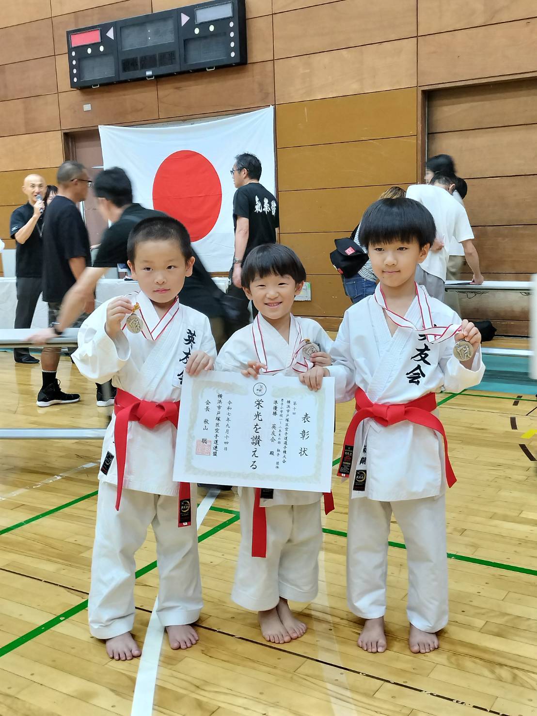 大会の最後は組手団体戦(1~2年生男子・鈴木・二瓶・竹内)準優勝でみんなで応援、力を合わせた結果となりました。
