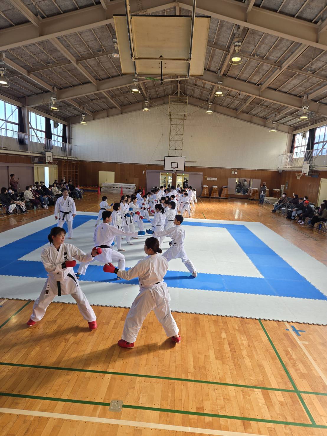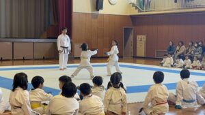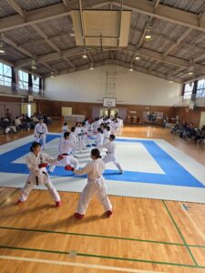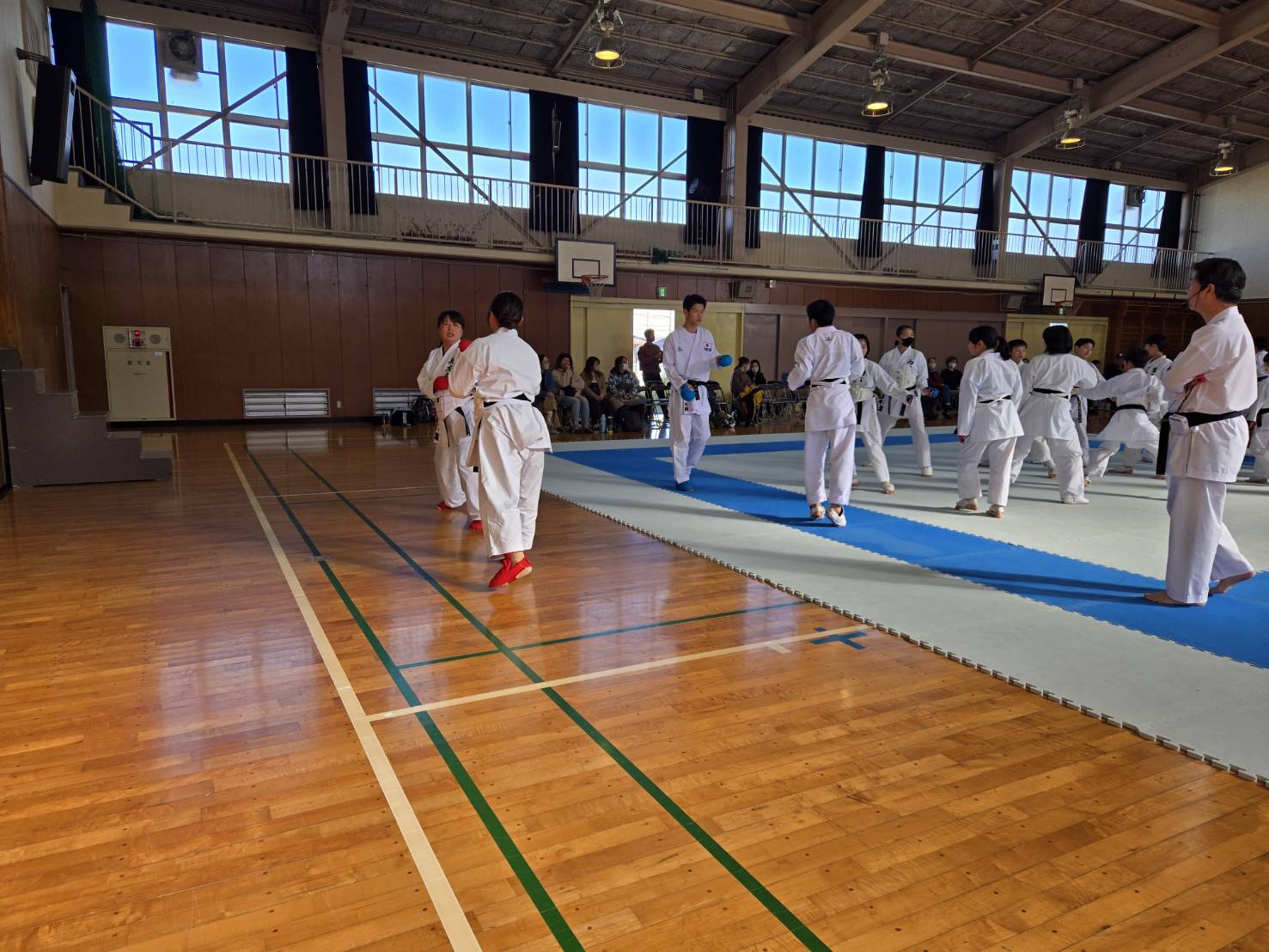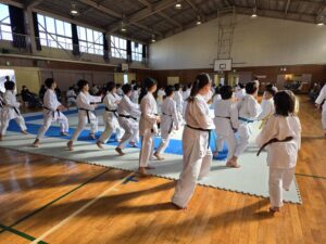 たくさんの道場の生徒と交流しながら、午前形・午後組手を黎明会の秋山聡先生から指導していただきました。